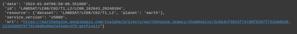 Notice there’s a specific URL designated for accessing the LANDSAT images itself. In the next step, we’ll utilize this URL to make a follow-up request and download the image for further processing.