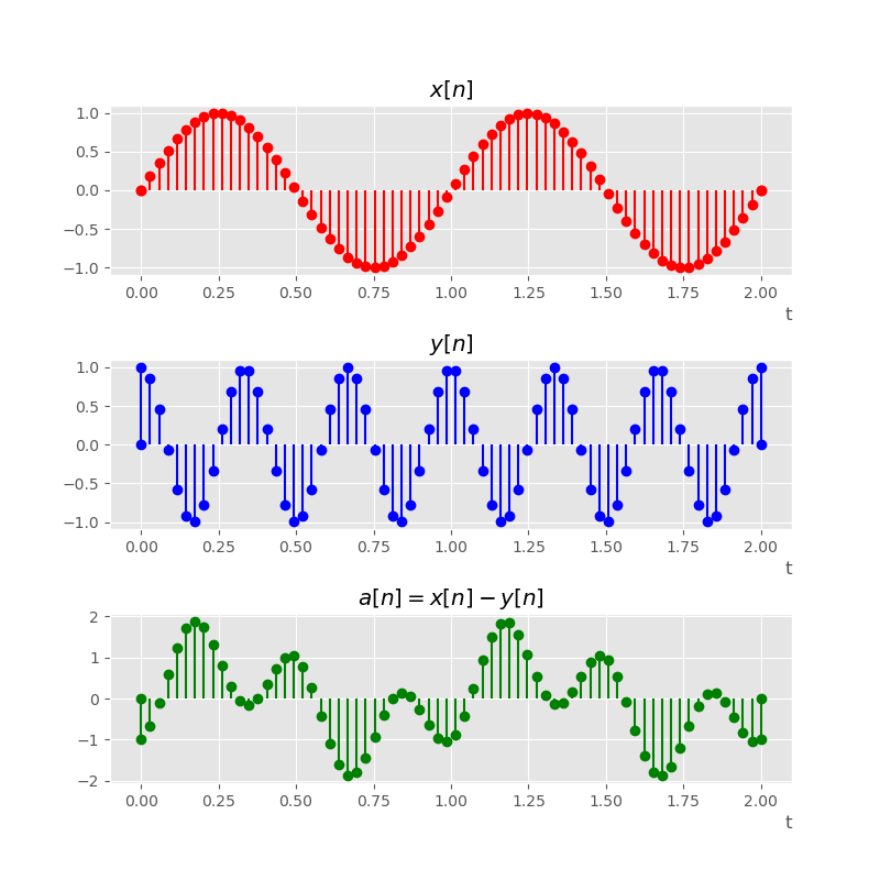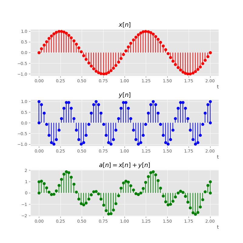 . This can be interpreted as the addition of two discrete signals, as depicted in the image below: